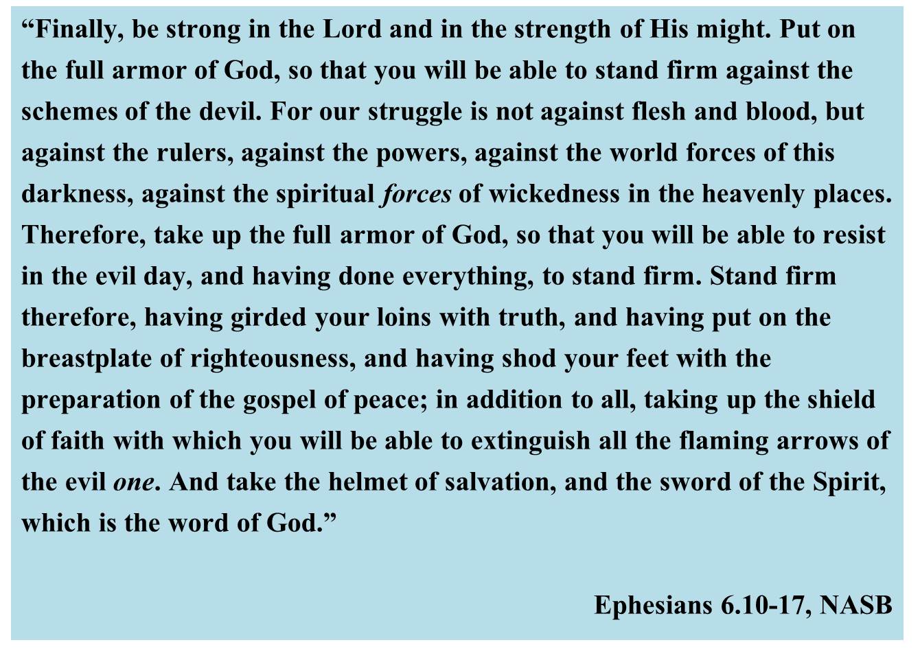 Jesus resisted Satan by standing in the truth of the Word. This is important. If we want to likewise withstand temptation, we have to know the Word – the whole Word. The apostle Paul reminds us this in Ephesians 6:
